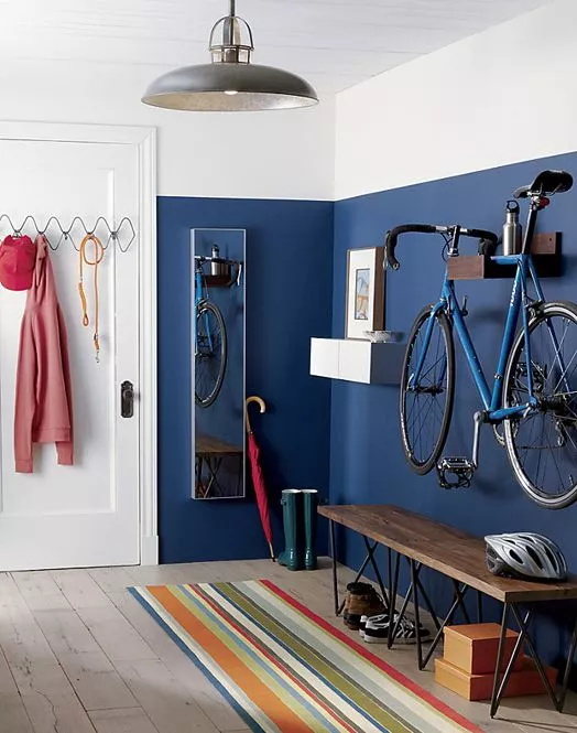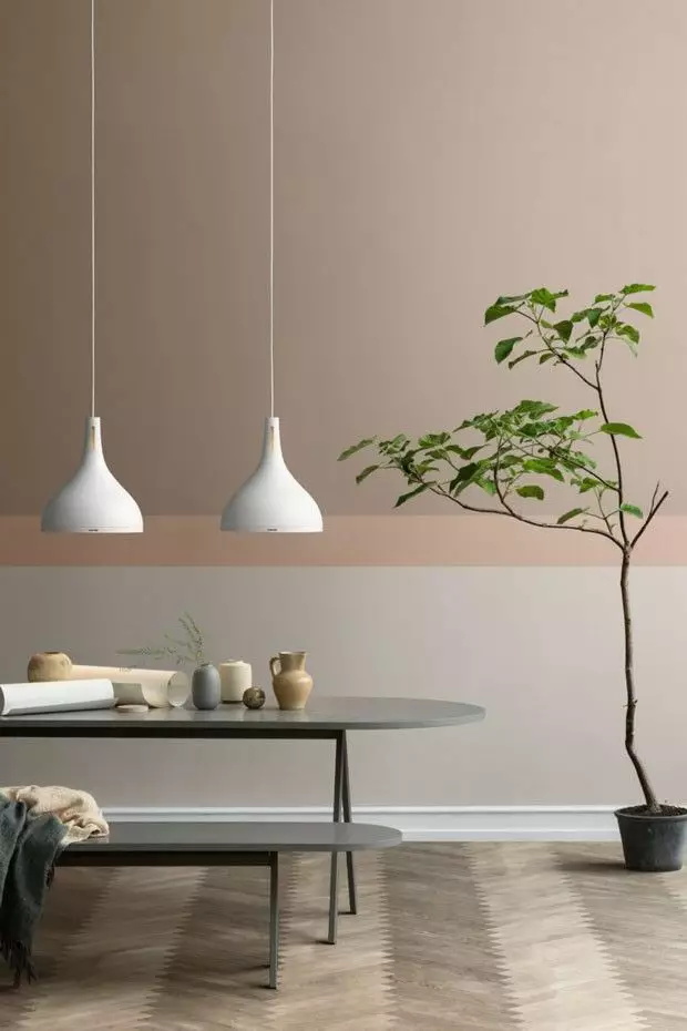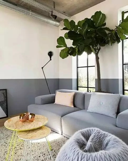 這個讓兩種顏色在墻上“平分秋色”的細節可以把深色和淺色同時帶入室內,顏色占用的比例可以根據情況而有所改變,也不一定是上下比例一致。