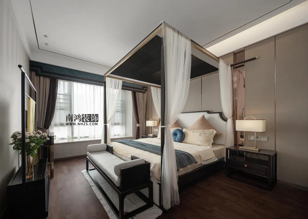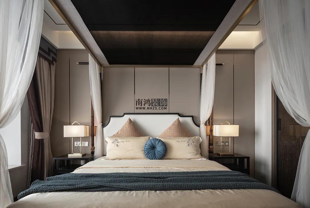 主臥背景墻選用淺色的硬包內(nèi)嵌金屬條,軟裝上則應(yīng)業(yè)主的需求,布置得相當(dāng)古色古香,唯美的東方韻味,置身其中,讓人只想隔絕一切喧囂,回歸最真實(shí)的恬淡心境。