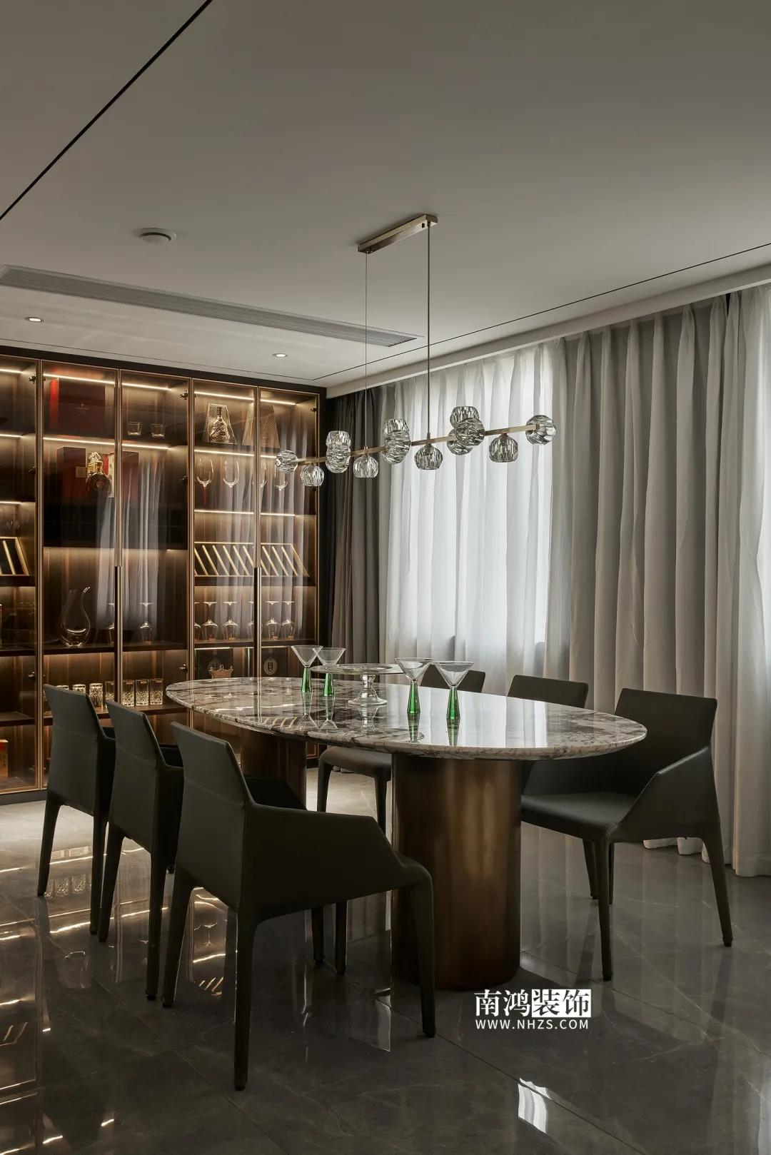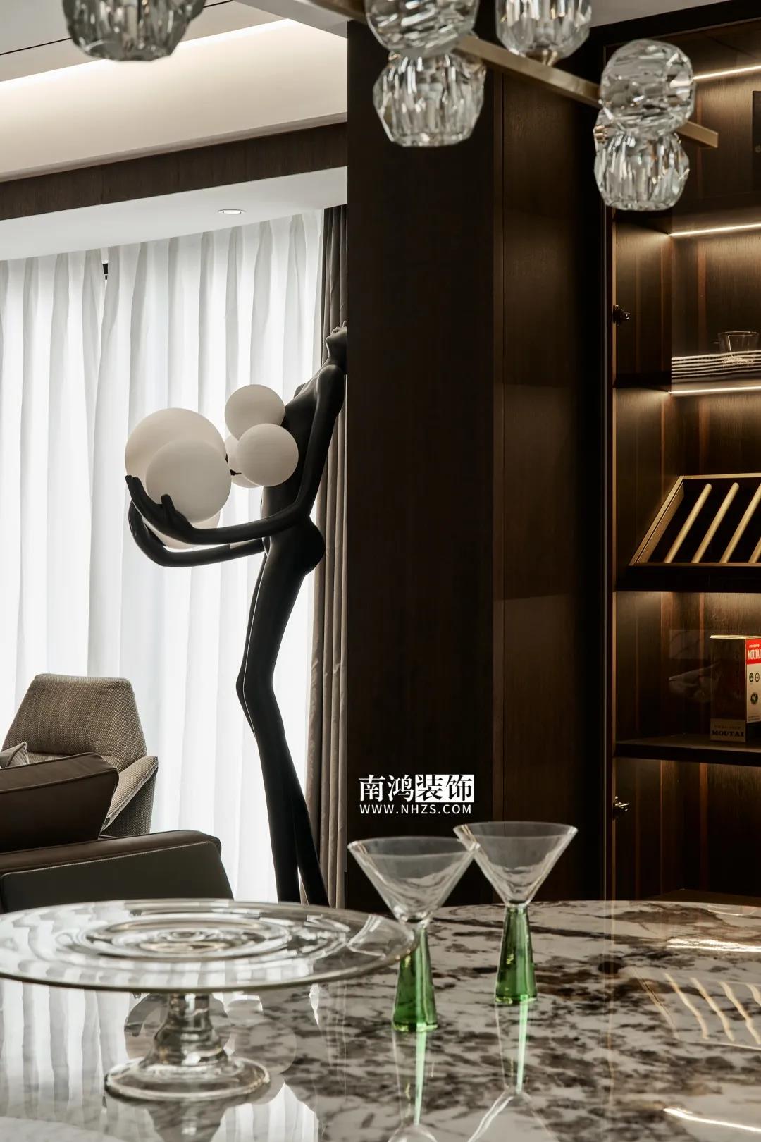 【項(xiàng)目·信息】 地址 / 華瑞晴廬 戶型 / 三室兩廳 面積 / 200㎡ 風(fēng)格 / 現(xiàn)代極簡(jiǎn) 設(shè)計(jì)施工 / 浙江南鴻裝飾 01. 客戶需求 本案的男業(yè)主是位個(gè)體戶老板,事業(yè)有成,性格熱情開(kāi)朗,十分好客,由于夫妻二人目前沒(méi)有小孩,父母也是偶爾來(lái)住,對(duì)房間的需求并不大,因此戶型從原來(lái)的5房3衛(wèi)改為了3房2衛(wèi),并盡可能擴(kuò)大客餐廚的面積,來(lái)滿足業(yè)主的會(huì)客需求。 02. 裝飾亮點(diǎn) “人內(nèi)在的細(xì)膩與深切的情感,需要與之對(duì)等的空間來(lái)承載。灰與黑,看似簡(jiǎn)單平靜,卻蘊(yùn)含著無(wú)窮的魅力。” 屋主偏愛(ài)深色系,因此設(shè)計(jì)師精細(xì)地調(diào)配深色在空間中的比例,運(yùn)用護(hù)墻板、大理石、皮革等質(zhì)感材質(zhì),借助燈光效果,為他們打造了這個(gè)頗具神秘感和高級(jí)感的暗色空間。 03. 戶型分析 & Design Drawing 1、進(jìn)門靠墻增加一組鞋柜以提升玄關(guān)收納。 2、原戶型中的兩個(gè)房間合并成餐廳區(qū)域,并與客廳打通,使人一進(jìn)屋便能感受到公空間的開(kāi)敞氣勢(shì)。 3、原有的一個(gè)衛(wèi)生間改造成衣帽間,將主臥打造成一個(gè)包含休閑區(qū)區(qū)、寬敞主衛(wèi)、衣帽間在內(nèi)的豪華套間。 04. 設(shè)計(jì)落地 很多人酷愛(ài)深色 與其說(shuō)天性愛(ài)低調(diào) 不如說(shuō)是深色所散發(fā)出的靜謐氣質(zhì) 恰好與渴求安寧的內(nèi)心產(chǎn)生了共鳴 灰與黑打造的客廳 洋溢著高級(jí)感與神秘氣質(zhì) 豐富的紋理、材質(zhì)變化 在空間內(nèi)形成一種微妙的和諧 熱情張揚(yáng)的紅 與深沉神秘的黑 兩相對(duì)立的色彩語(yǔ)言 帶來(lái)十足的視覺(jué)沖擊力 & Dining Hall 黑色的皮革餐椅 搭配高顏值的大理石餐桌 打造精致的多人用餐環(huán)境 餐廳做整面酒柜 置入暖黃燈帶 既是酒水的完美收納 又是一處身份品味的象征 玄關(guān)往客廳的過(guò)渡區(qū)域 安置精心打造的吧臺(tái) 成為過(guò)道口的一處個(gè)性風(fēng)景 也是日常的簡(jiǎn)餐區(qū) 廚房擁有標(biāo)準(zhǔn)的U形操作臺(tái) 儲(chǔ)物充足,動(dòng)線流暢 深色櫥柜與臺(tái)面 完美塑造一體式空間感 主臥承襲整體的暗色風(fēng)格 深沉的灰黑色打底 傳達(dá)平和寧?kù)o的空間情緒 豪華的主臥套房 包含休閑區(qū)、主衛(wèi)與衣帽間 擯棄了所有多余的裝飾 只保留每一件必需的家具 獨(dú)立衣帽間設(shè)計(jì) 黑色柜體內(nèi)藏有燈帶 酷雅有型 純粹的黑構(gòu)建理性的質(zhì)感 透過(guò)白色紗簾進(jìn)入室內(nèi)的日光 讓客臥空間 簡(jiǎn)潔中帶上了變化 次臥床尾 安排書桌椅與書架 灰色的墻布 排除一切冗余 力求沉穩(wěn)大氣 經(jīng)過(guò)戶型調(diào)整 主衛(wèi)內(nèi)部更顯寬敞 浴缸與淋浴區(qū)分居兩側(cè) 功能區(qū)的豐滿 是給生活最大的舒適 次衛(wèi)風(fēng)格與主衛(wèi)相似 石紋瓷磚搭配木質(zhì)臺(tái)盆柜 淋浴區(qū)內(nèi)設(shè)置壁龕 視覺(jué)舒適,實(shí)用性強(qiáng)