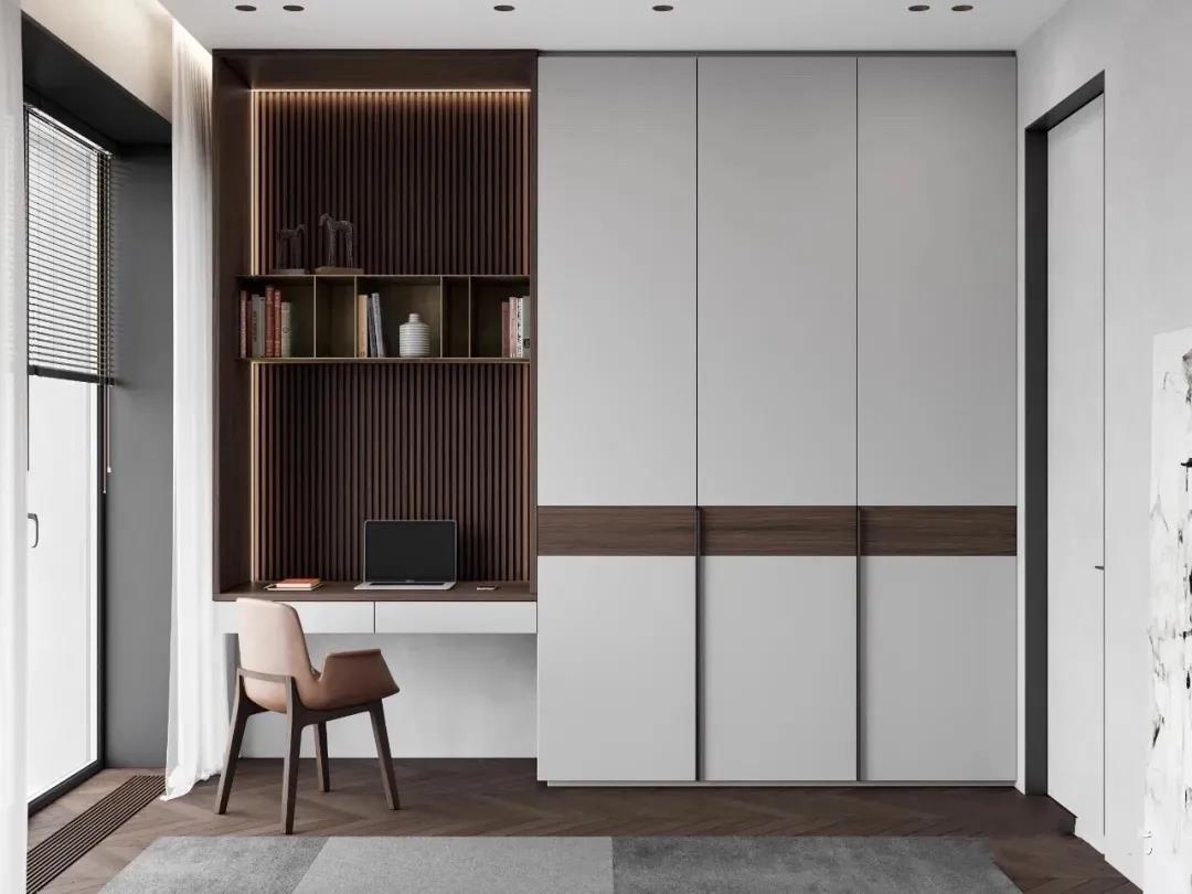 除了可以大范圍鋪展,木格柵在小范圍內使用也不錯,典型的就是用作柜門。